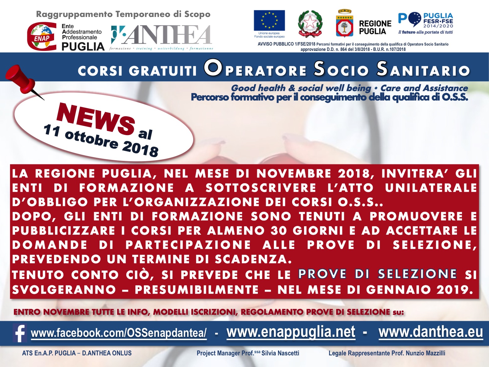 LINK: Pagina Facebook dei corsi O.S.S. En.A.P. PUGLIA – D.ANTHEA ONLUS
