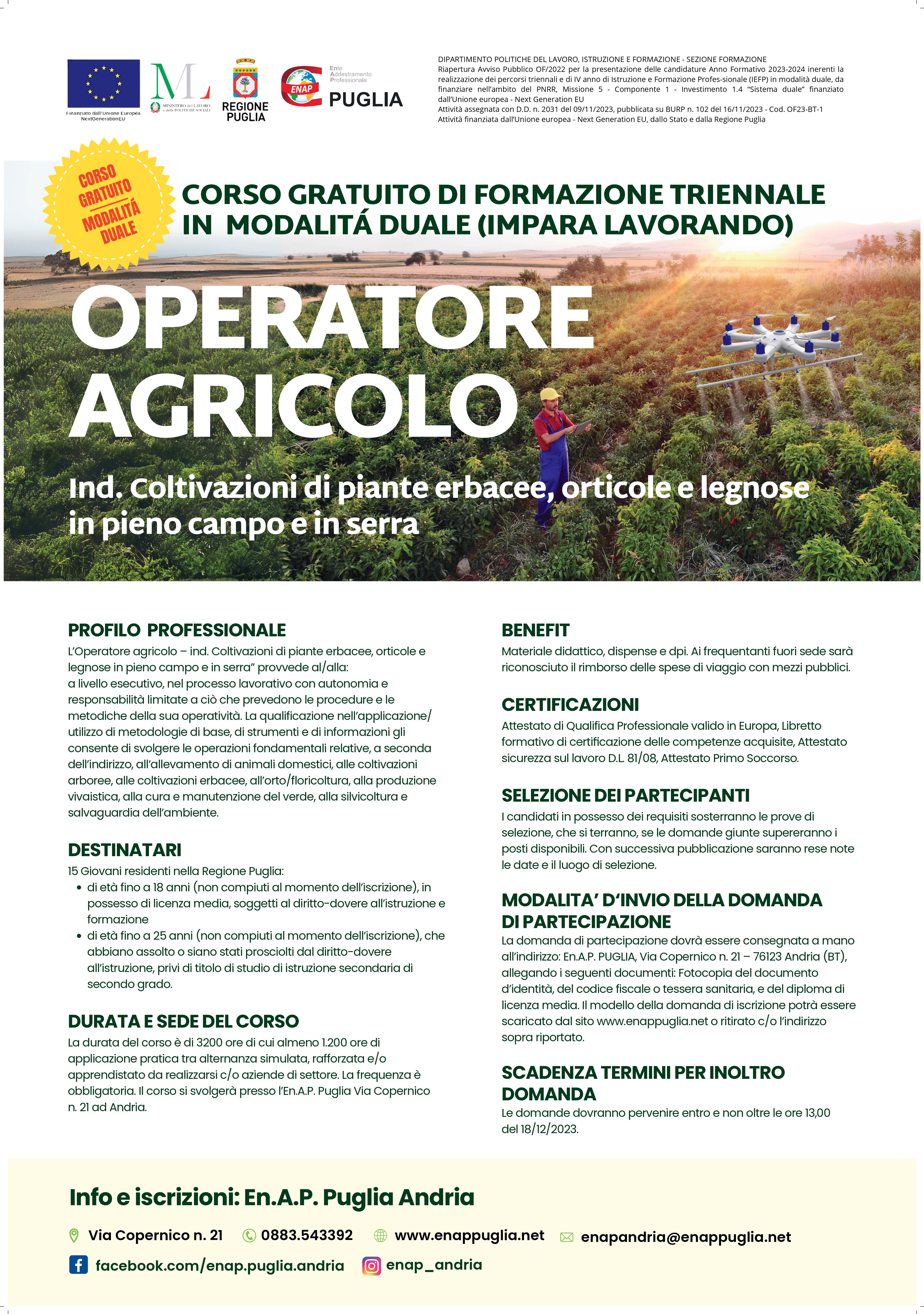 CORSO GRATUITO OPERATORE AGRICOLO | APERTE LE ISCRIZIONI | FORMAZIONE TRIENNALE IN MODALITÀ DUALE