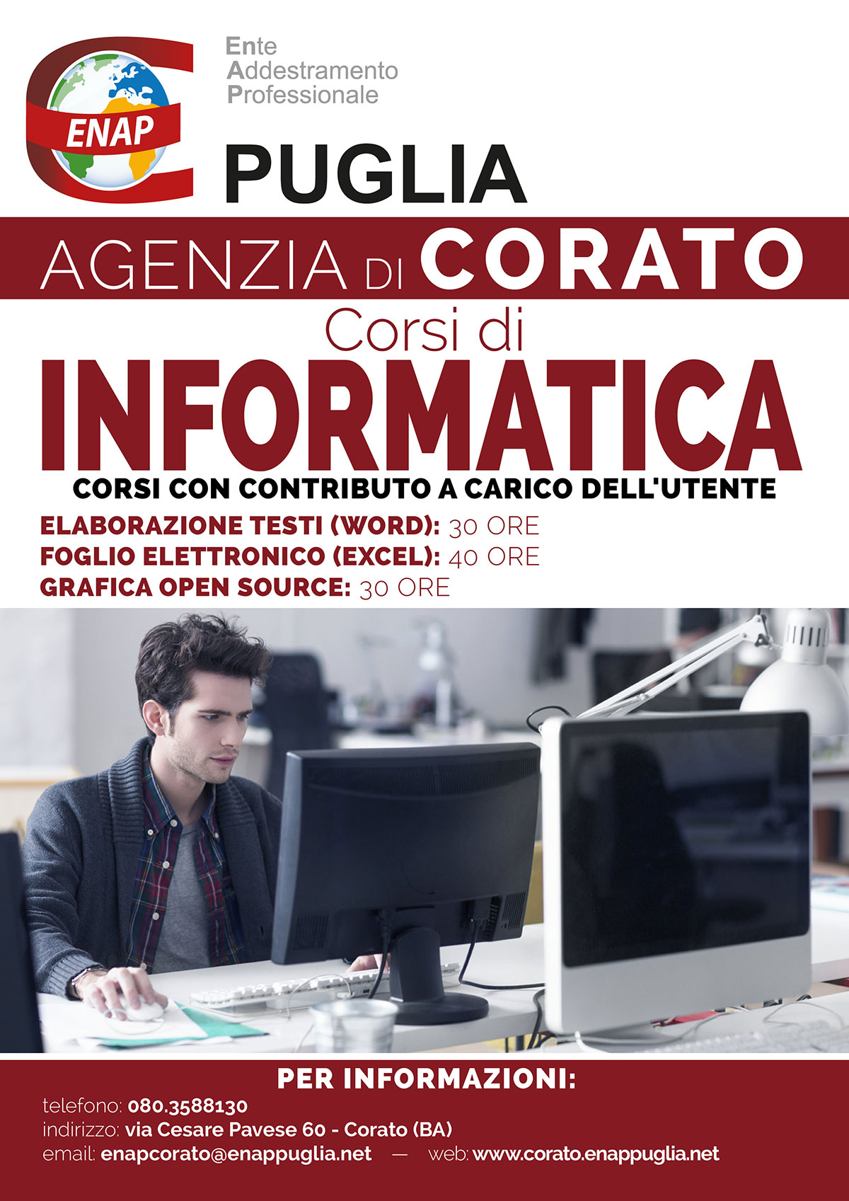 I corsi sono distribuiti sulle sedi di Andria, Corato, Miglianico (CH), Modugno, Taranto. Contattate la sede più vicina a voi, oppure compilate la manifestazione di interesse che trovate sul sito, e sarete ricontattati.